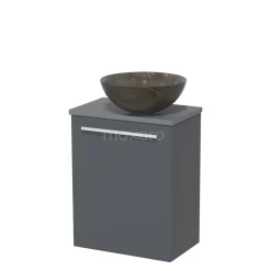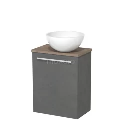 Toiletmeubel Met Waskom Mineraalmarmer Modulo Donkergrijs Beton Vlak 41 Cm Middenbruin Eiken Blad