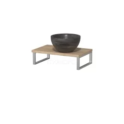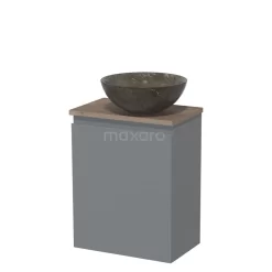 Toiletmeubel Met Waskom Natuursteen Modulo Middengrijs Greeploos 41 Cm Middenbruin Eiken Blad