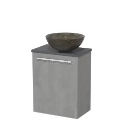 Toiletmeubel Met Waskom Natuursteen Modulo Lichtgrijs Beton Vlak 41 Cm Donkergrijs Blad