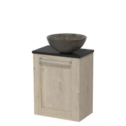 Toiletmeubel Met Waskom Natuursteen Modulo Lichtgrijs Eiken Kader 41 Cm Mat Zwart Blad