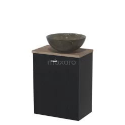Toiletmeubel Met Waskom Natuursteen Modulo Mat Zwart Lamel 41 Cm Middenbruin Eiken Blad