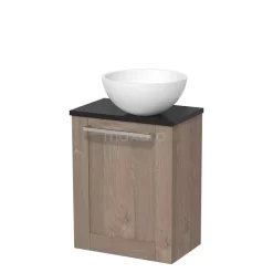 Toiletmeubel Met Waskom Solid Surface Modulo Mat Zwart Greeploos 41 Cm Grijs Eiken Blad