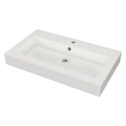 Modulo Badkamermeubel Met Wastafel | 80 Cm Hoogglans Wit Vlak Front Mineraalmarmer Laag Zwevend