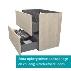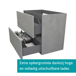 Modulo Badkamermeubel Met Wastafel | 80 Cm Taupe Greeploos Front Natuursteen 2 Lades Onder Elkaar
