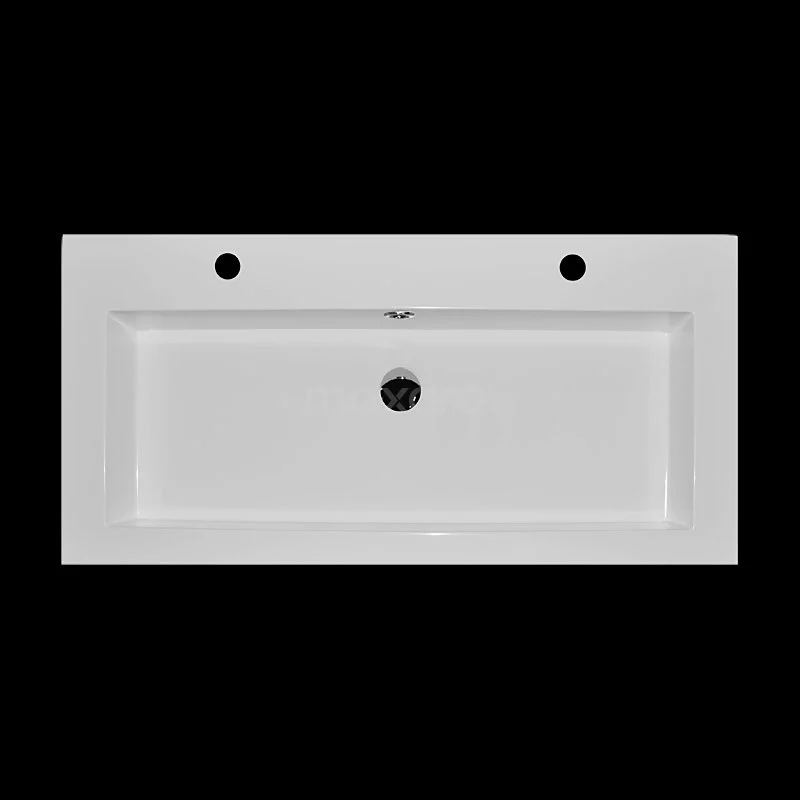 Het badkamermeubel is voorzien van een witte Milia-wastafel. Dit rechthoekige exemplaar heeft smalle randen die recht naar beneden lopen en een ronde overloop in chroom. De wastafel is vervaardigd uit mineraalmarmer, waarover een gelcoating is aangebracht voor een mooie glans. Krassen en vuil poetst u eenvoudig weg, waardoor dit materiaal zeer onderhoudsvriendelijk is.