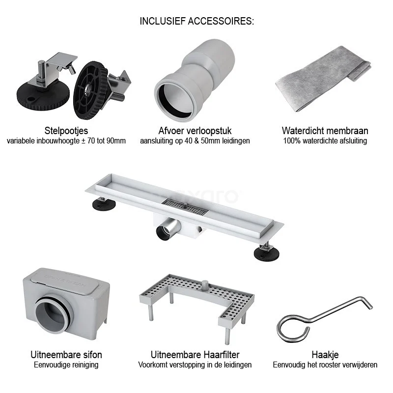 U ervaart ultiem onderhoudsgemak met dit model. Deze douchegoot beschikt onder andere over een haarfilter. Hierdoor zijn verstoppingen van uw leidingen voorgoed verleden tijd. Verder zorgt de flensrand en het waterdicht membraan voor een 100% waterdichte afsluiting. Daarnaast is de goot voorzien van een uitneembare sifon. Schoonmaken kost u op deze manier maar weinig tijd en moeite.