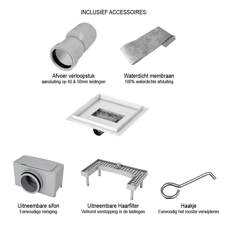Met deze doucheput ervaart u ultiem onderhoudsgemak. Dit exemplaar is onder andere voorzien van een flensrand en het waterdicht membraan, wat zorgt voor een 100% waterdichte afsluiting. Daarbij is de put voorzien van een speciale haarfilter. Verstoppingen van uw leidingen zijn hiermee voorgoed verleden tijd. Verder heeft deze doucheput een uitneembare sifon. Schoonmaken kost u op deze manier maar weinig tijd en moeite.