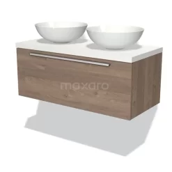 Dankzij het prachtige design is dit badkamermeubel de eyecatcher van uw badkamer. De middenbruin eiken onderkast heeft een warme uitstraling en is voorzien van een wastafelblad in mat wit. Daarnaast beschikt het meubel over een vlak front voor een tijdloze touch. De handgreep dient u zelf toe te voegen. Deze is verkrijgbaar in verschillende kleuren en vormen.