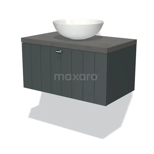Dankzij het prachtige design is dit badkamermeubel de eyecatcher van uw badkamer. De donkergrijze onderkast heeft een moderne uitstraling en is voorzien van een wastafelblad in donkergrijs beton. Daarnaast beschikt het meubel over een lamelfront voor een landelijke touch. De handgreep dient u zelf toe te voegen. Deze is verkrijgbaar in verschillende kleuren en vormen.