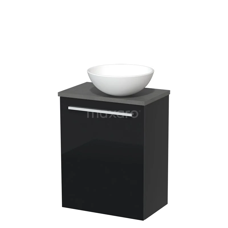 Dankzij het prachtige design is het meubel een blikvanger in de toiletruimte. De onderkast heeft een hoogglans zwarte afwerking met een donkergrijs beton wastafelblad.