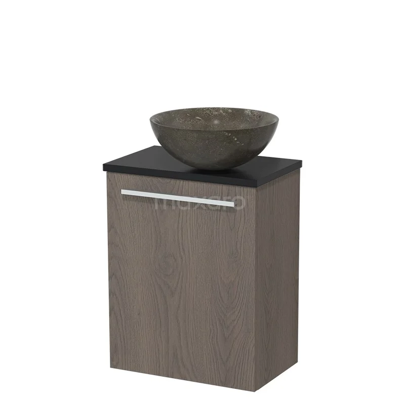 Dankzij het prachtige design is het meubel een blikvanger in de toiletruimte. De onderkast heeft een donkerbruin eiken afwerking met een mat zwart wastafelblad.