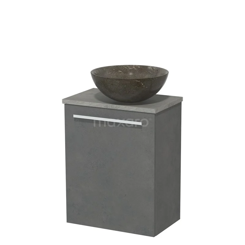 Het toiletmeubel is gecombineerd met een Novanta waskom. Deze stijlvolle waskom is gemaakt van natuursteen met een blue stone afwerking.