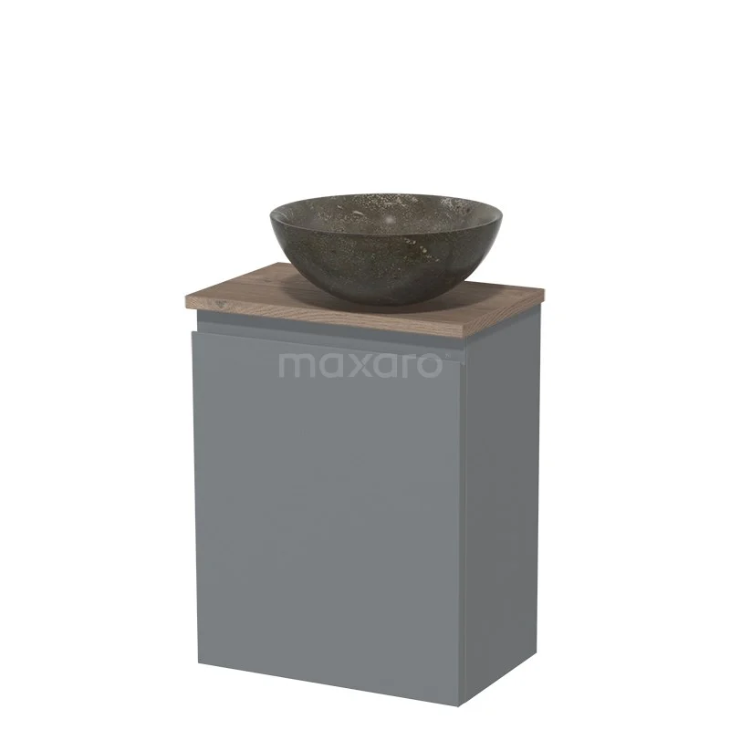 Het toiletmeubel is gecombineerd met een Novanta waskom. Deze stijlvolle waskom is gemaakt van natuursteen met een blue stone afwerking.