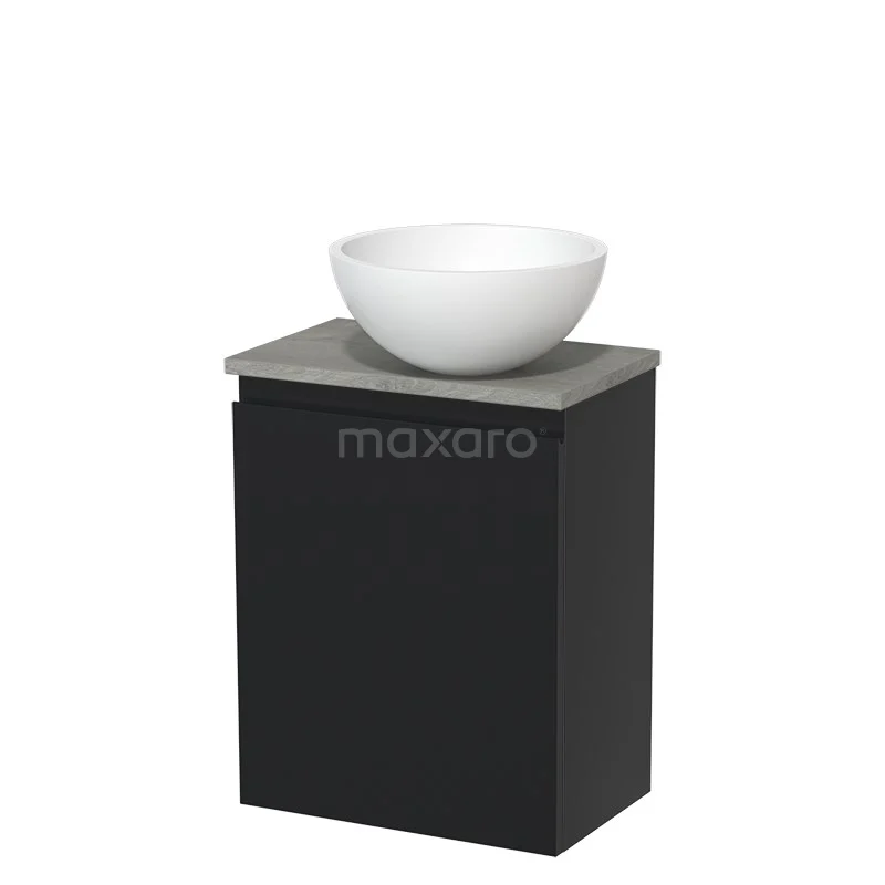 Dankzij het prachtige design is het meubel een blikvanger in de toiletruimte. De onderkast heeft een mat zwarte afwerking met een grijs eiken wastafelblad.