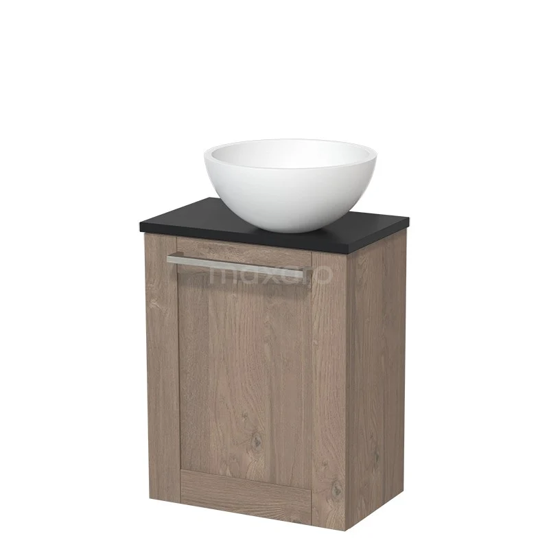 Dankzij het prachtige design is het meubel een blikvanger in de toiletruimte. De onderkast heeft een middenbruin eiken afwerking met een mat zwart wastafelblad.